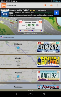 • 57 U.S. license plates: one for each of the U.S. 50 states, one for Washington D.C., one for the U.S. Government, and five for the U.S. territories. Eleven more in the paid version.