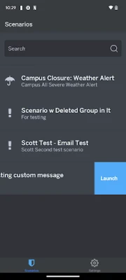 Omnilert's user-friendly admin portal enables users to launch scenarios on the go. Verify your account through multi-factor authentication and easily view and launch from a list of your scenarios.